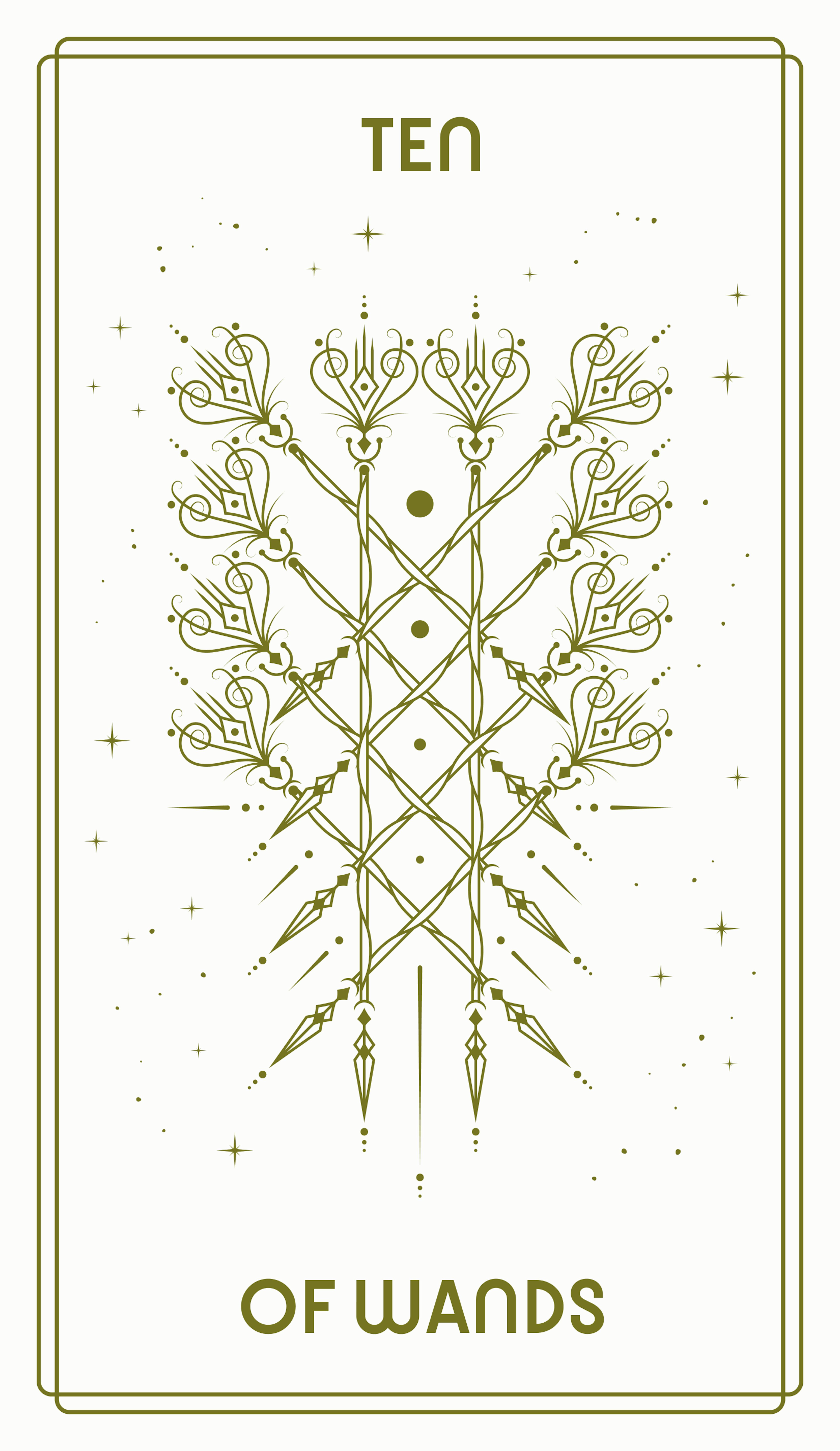 The salamanders that adorn his tunic are symbolic of the transformative power of fire and are a visual echo of the salamanders on the Knight of Wands’ tunic. Like The Fool (Major Arcana card #0), he wears a red feather in his cap, announcing his energy, enthusiasm, and his passionate desire to pursue his dreams.